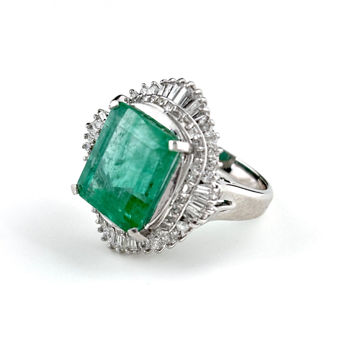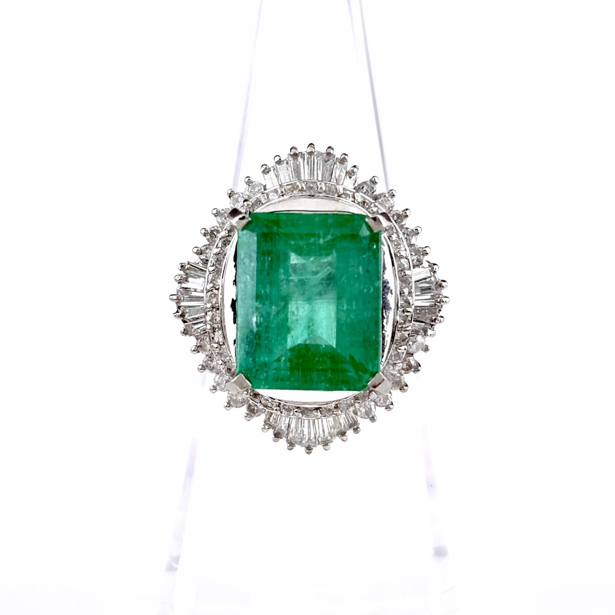 エメラルド デザインリング プラチナ メレダイヤ 指輪 リング 12号 Pt900 エメラルド ダイヤモンド レディース ノンブランドジュエリー 【中古】nbjwl