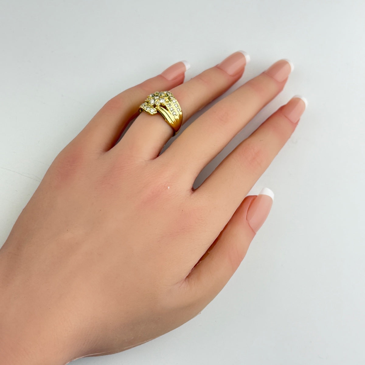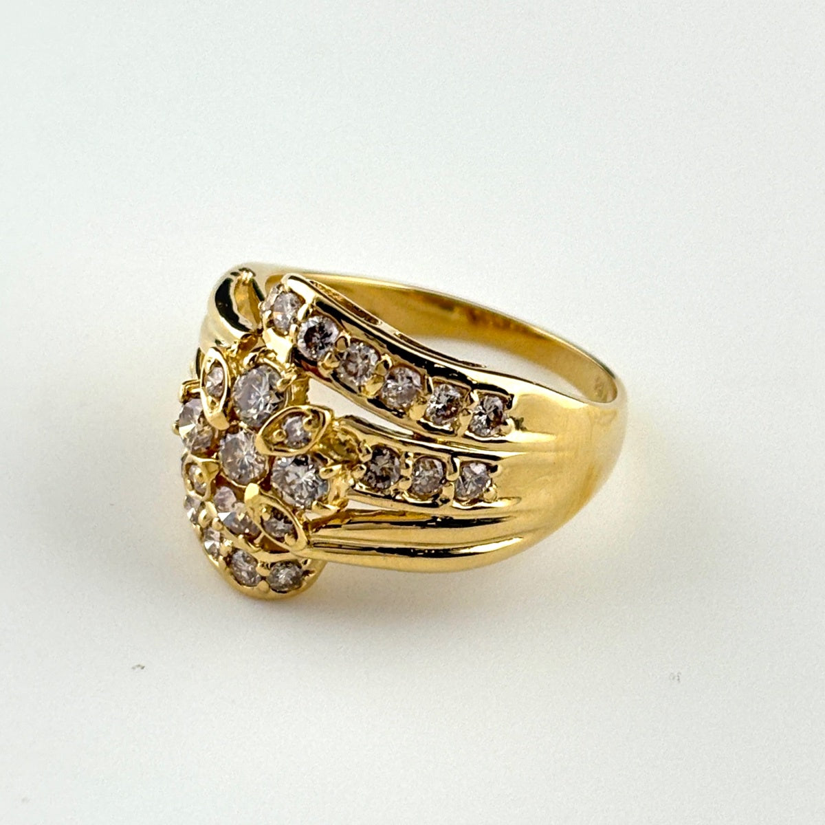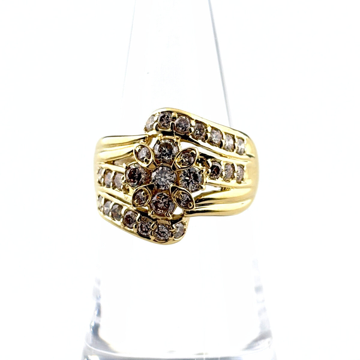 フラワーモチーフ デザインリング YG イエローゴールド 指輪 メレダイヤ リング 11.5号 K18 ダイヤモンド レディース ノンブランドジュエリー 【中古】nbjwl