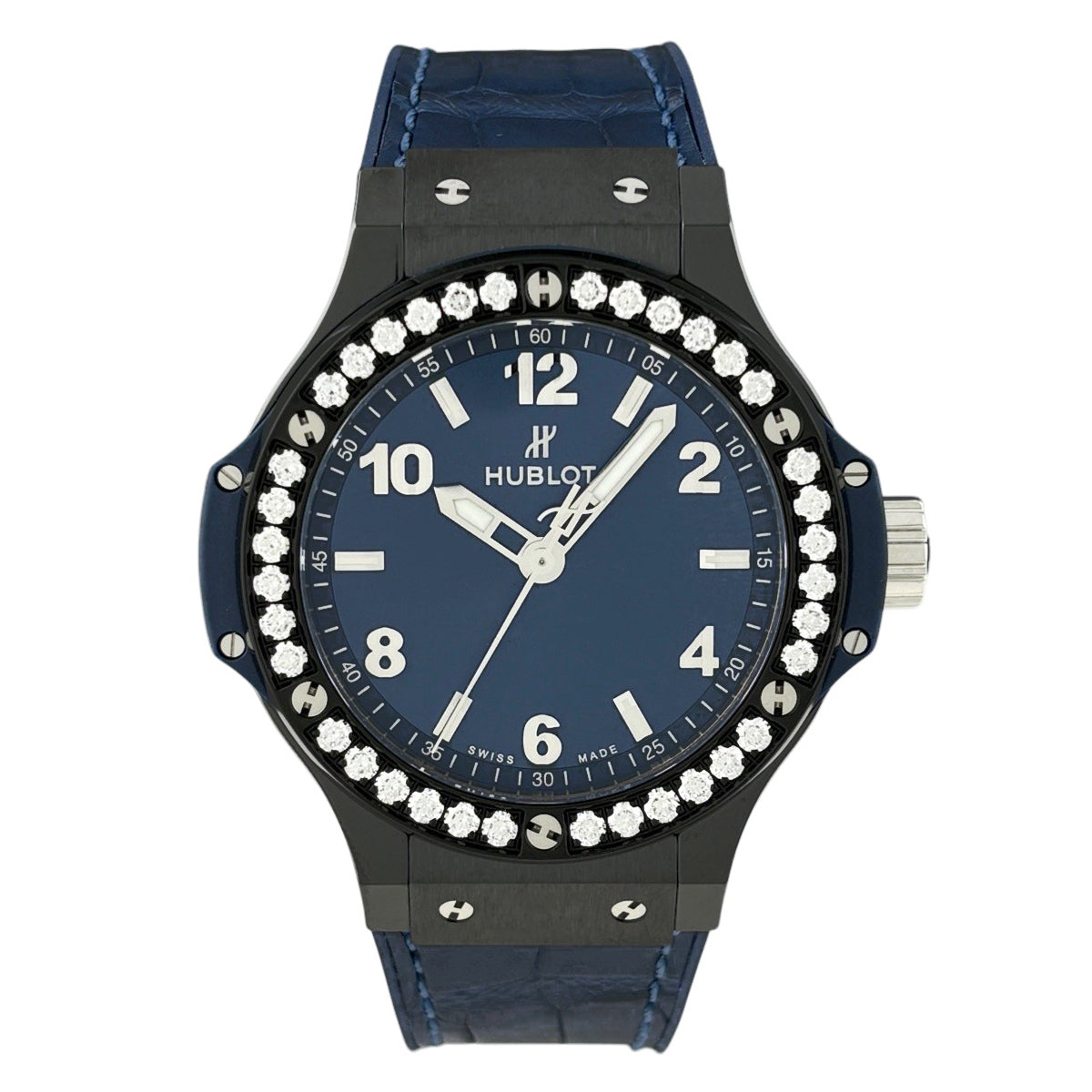 ウブロ ビッグ・バン セラミック ブルー ダイヤモンド 361.CM.7170.LR.1204 腕時計 セラミック レザー ラバー クォーツ ブルー メンズ 時計 中古 wtcbb