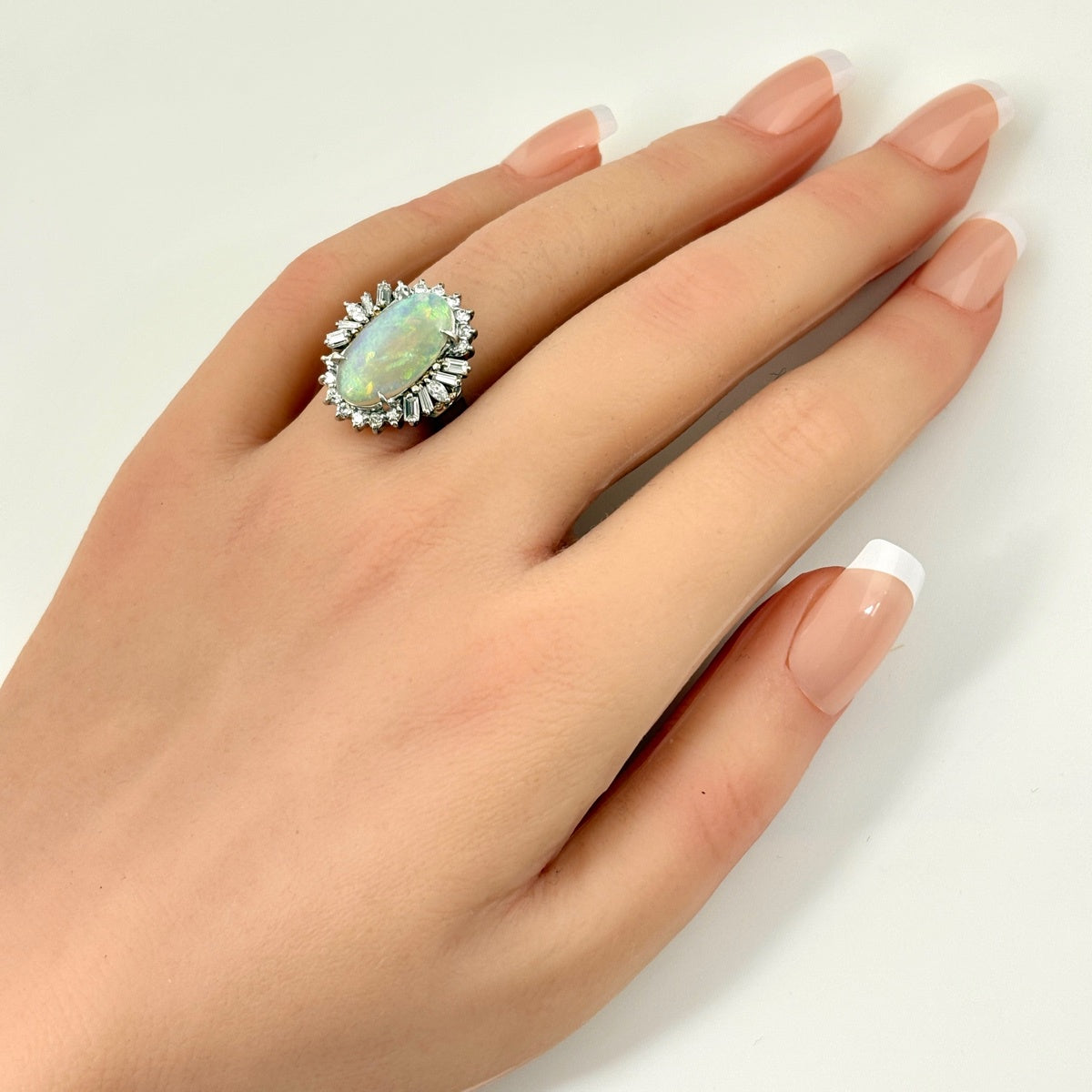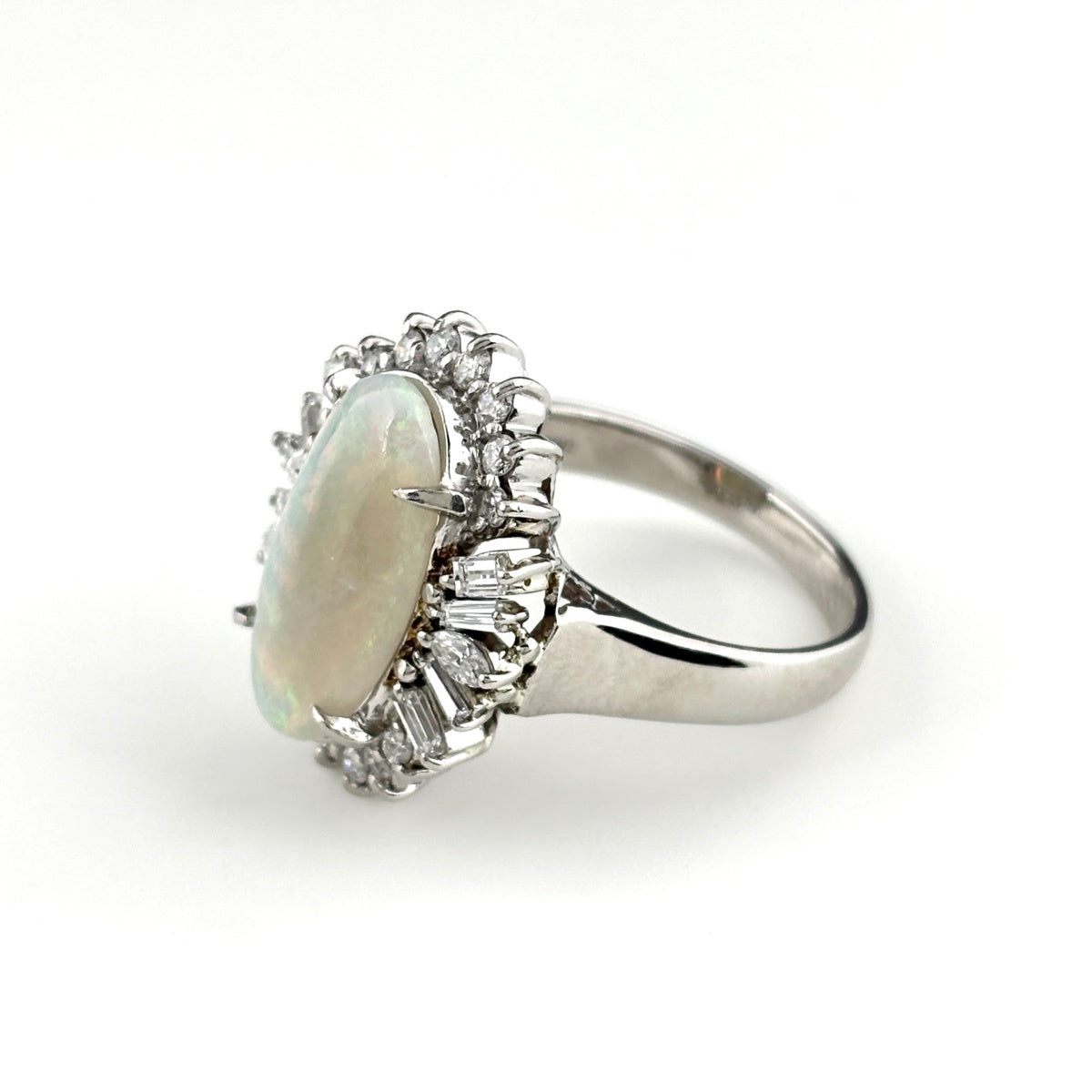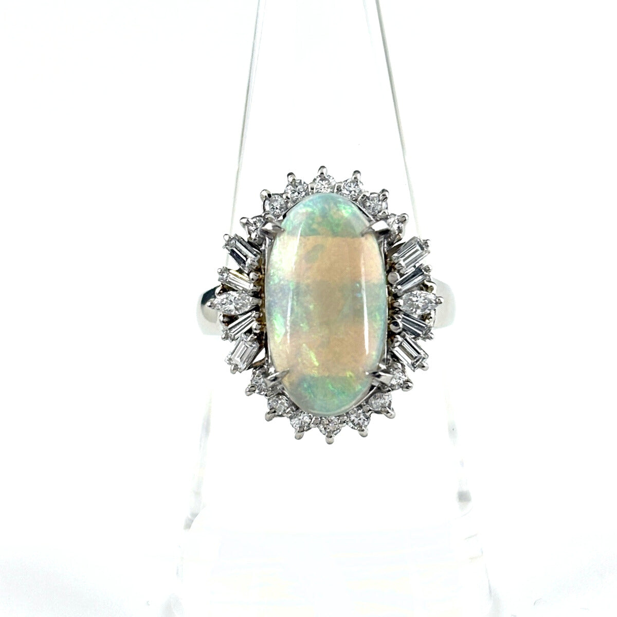オパール デザインリング プラチナ メレダイヤ 指輪 リング 16号 Pt900 オパール ダイヤモンド レディース ノンブランドジュエリー 【中古】nbjwl