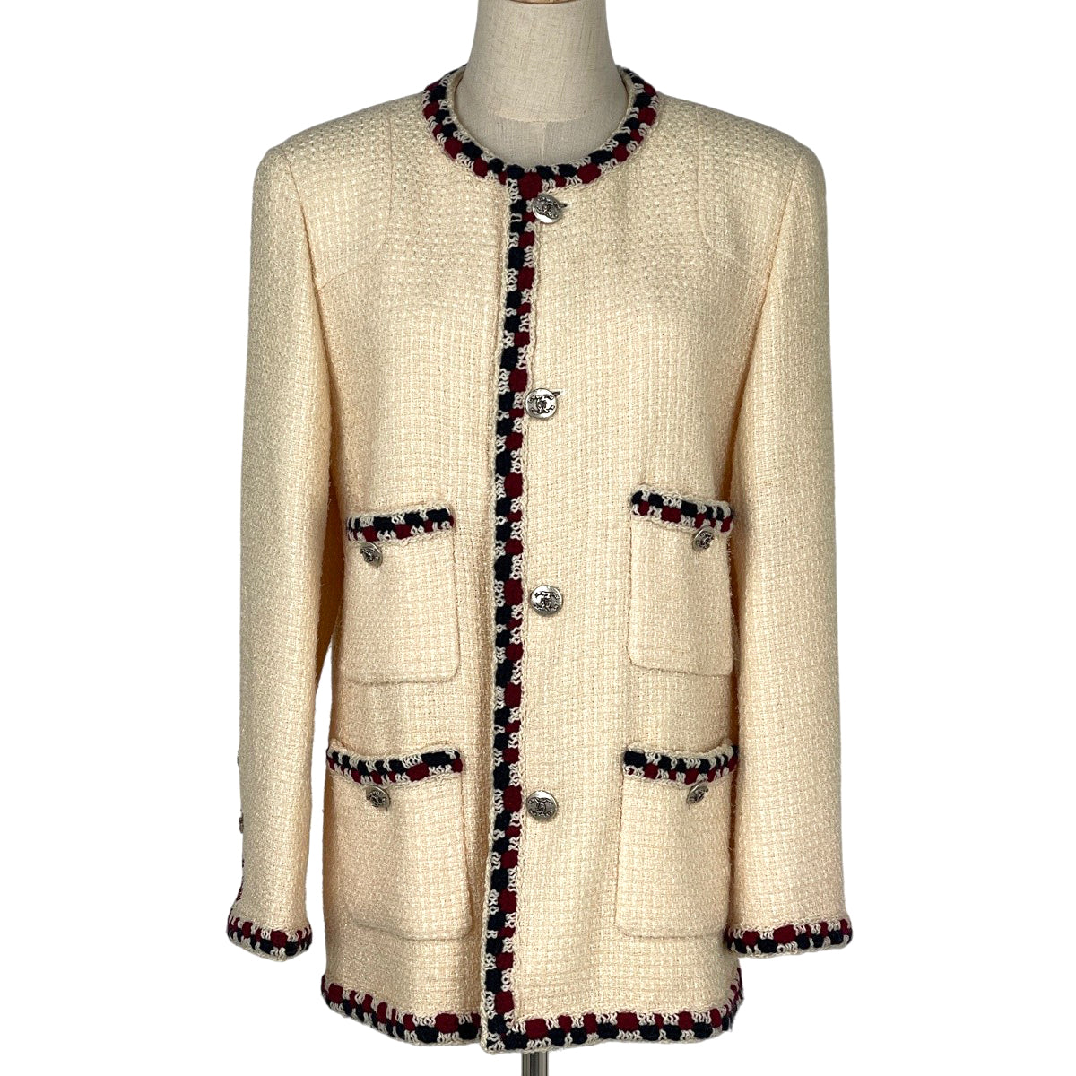 シャネル ココマークボタン ツイード ジャケット 11B アウター ノーカラージャケット ウール ナイロン オフホワイト レディース ブランドアパレル 【中古】brapp
