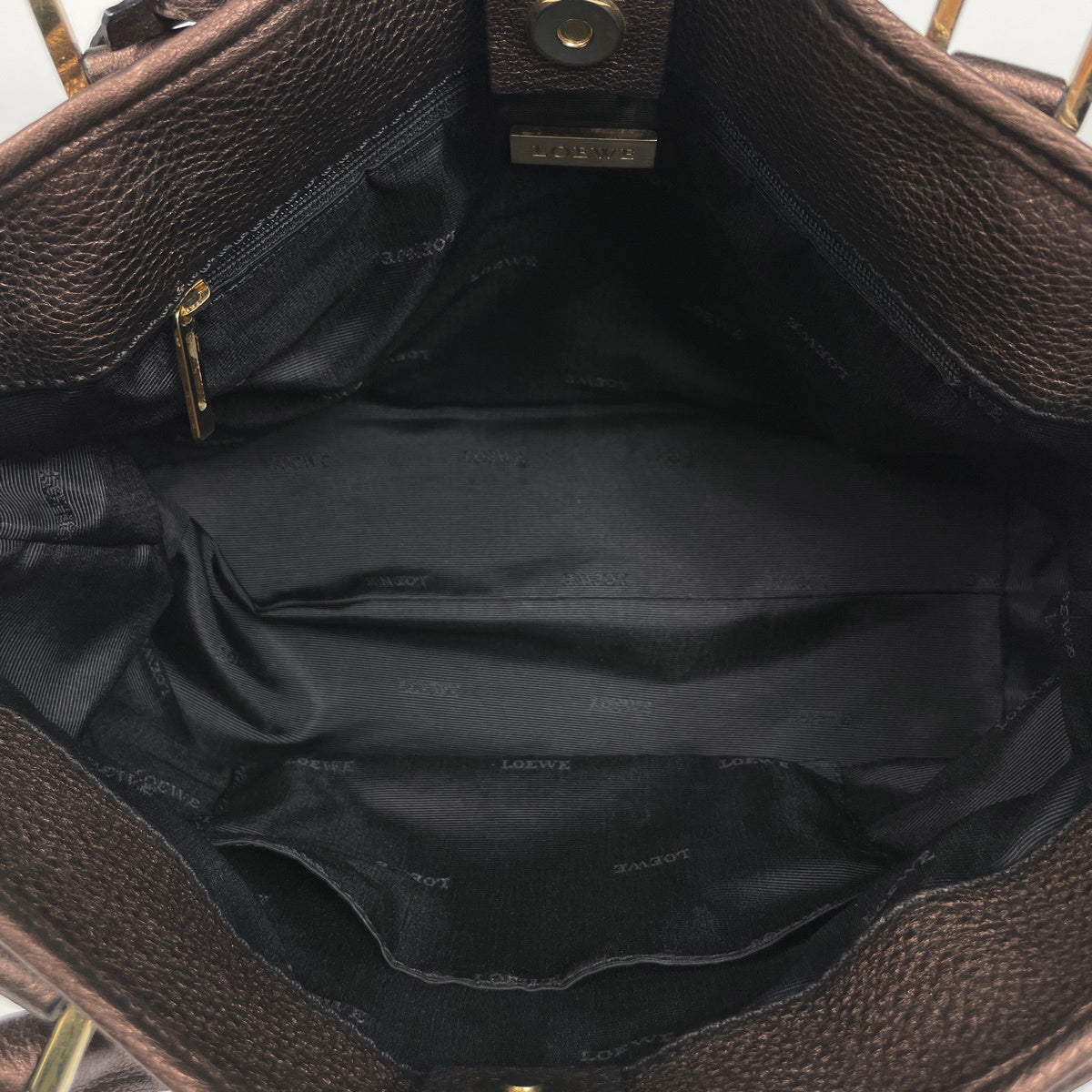 ロエベ アマソナ 28 アナグラム メタリック ハンドバッグ レザー ブラウン レディース ブランドバッグ・小物 【中古】brbag