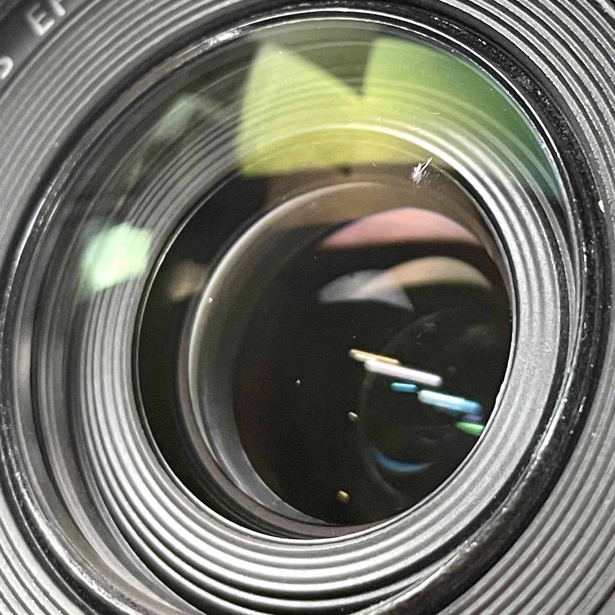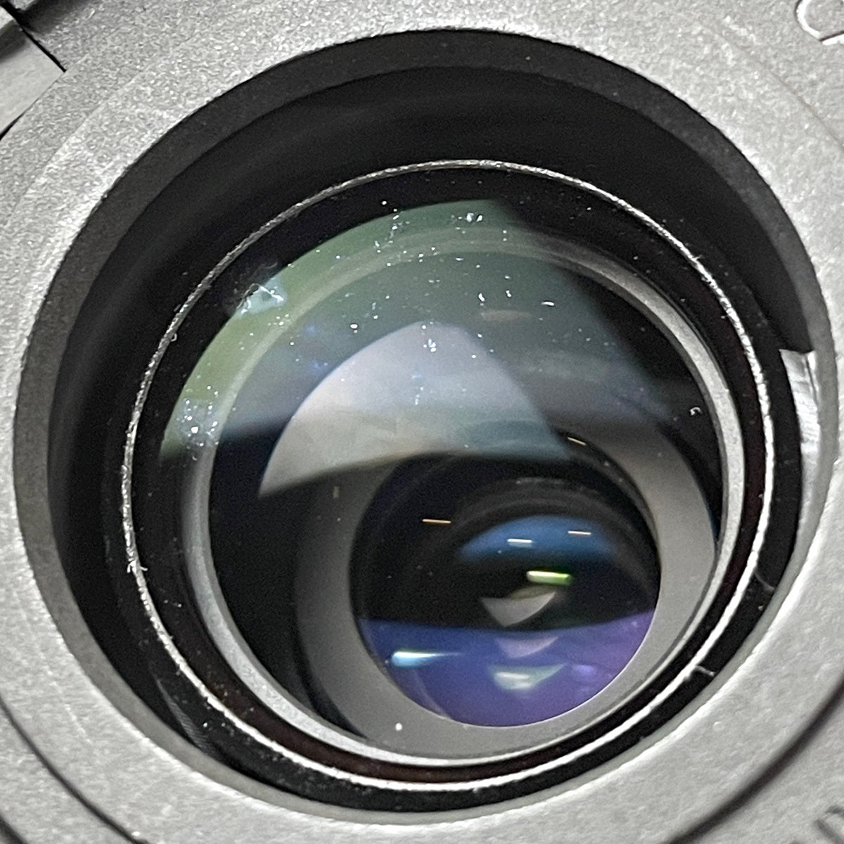 レンズ内部にクモリやカビ、キズ、繊維やホコリの混入、前の表面にキズ、後ろの表面寄りにカビがあります。