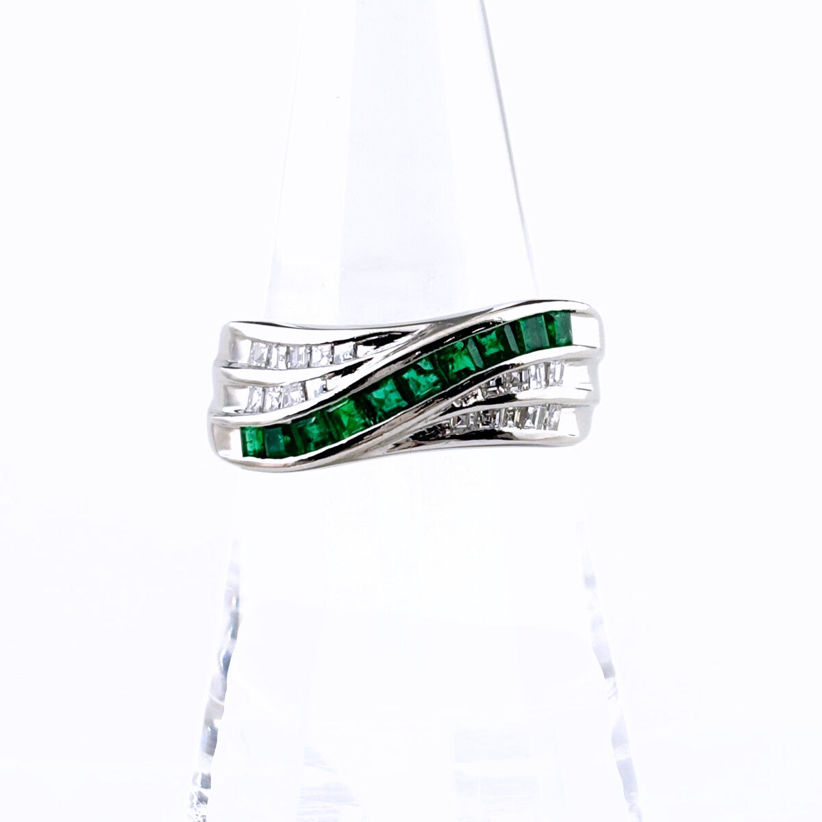 エメラルド リング 15.5号 Pt900 エメラルド ダイヤモンド レディース ノンブランドジュエリー 【中古】nbjwl