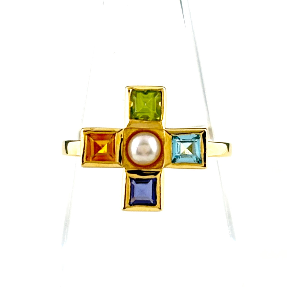 アガット パール リング 8.5号 K18 パール カラーストーン レディース ブランドジュエリー 【中古】brjwl