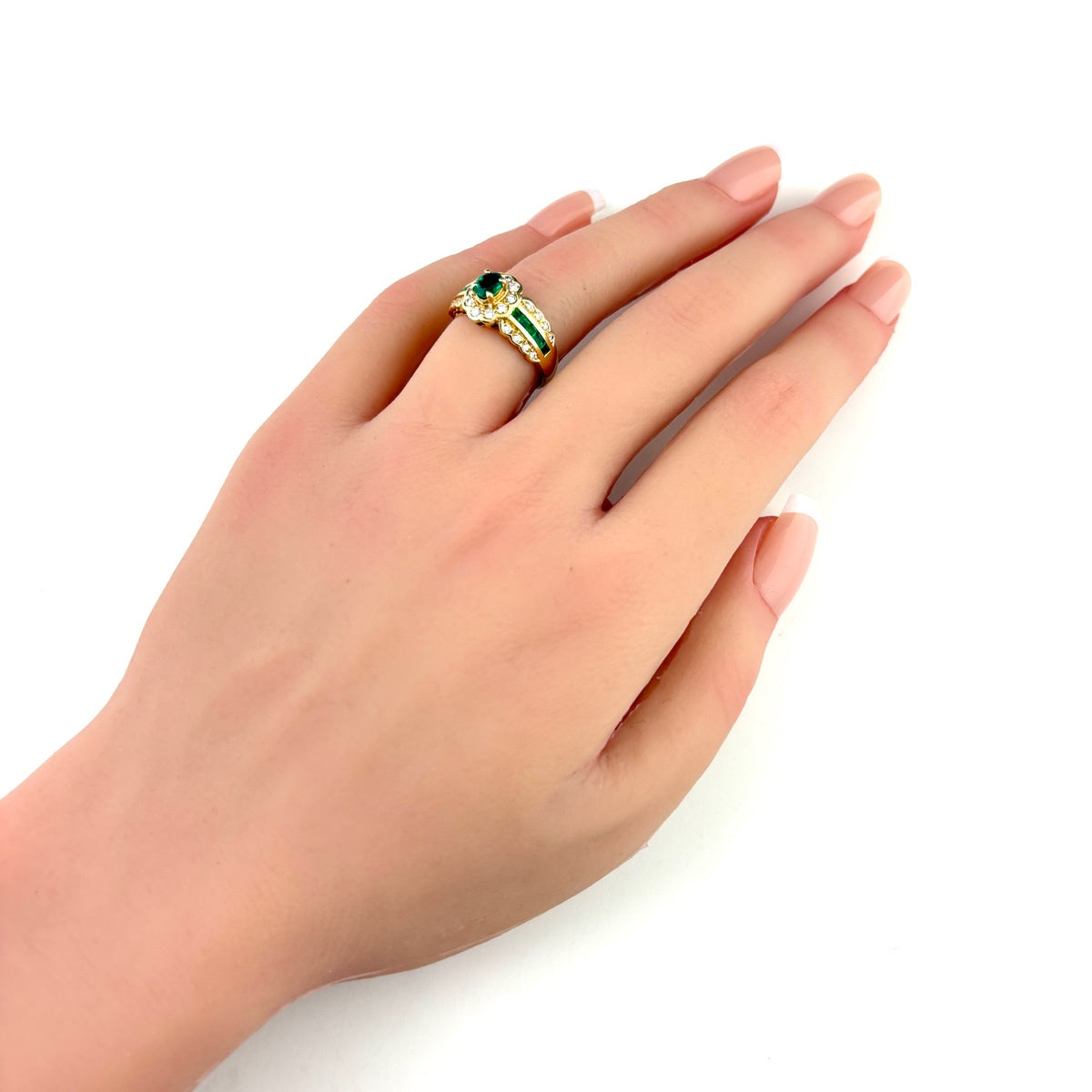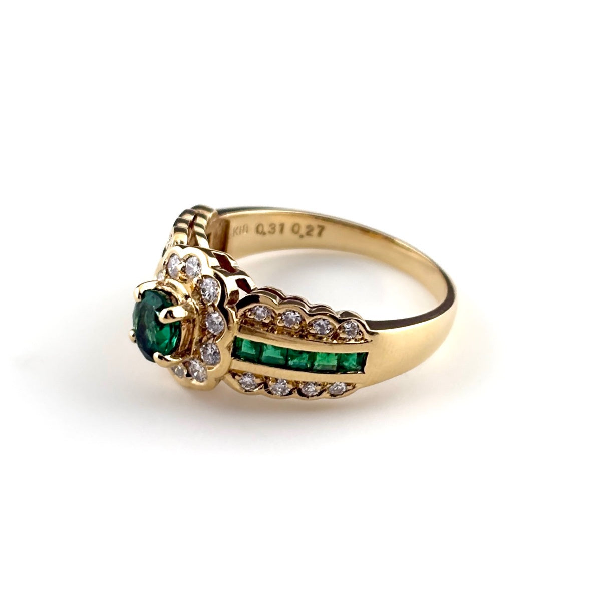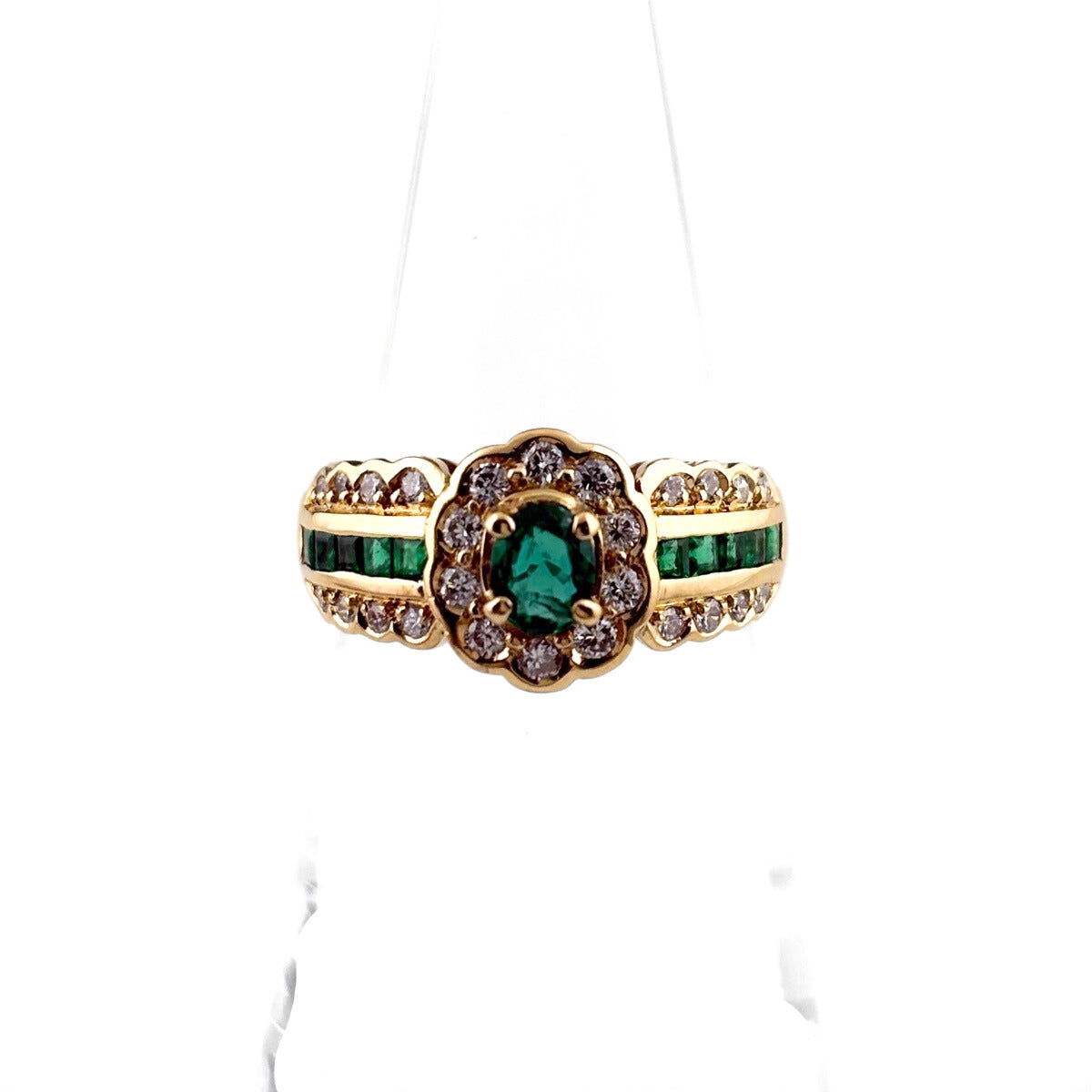 エメラルド デザインリング リング 12号 K18 エメラルド ダイヤモンド レディース ノンブランドジュエリー 【中古】nbjwl