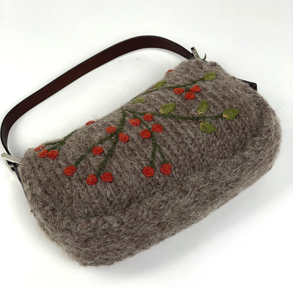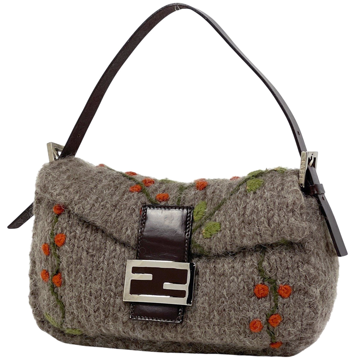 フェンディ ズッカロゴ マンマバゲット ニット 刺繍 ハンドバッグ ショルダーバッグ ファブリック ブラウン 6059 レディース ブランドバッグ・小物 【中古】brbag