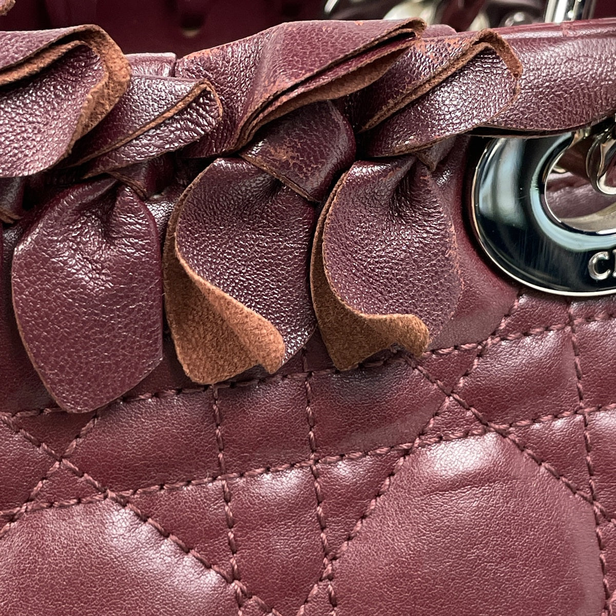 クリスチャンディオール レディディオール カナージュ 2WAY ショルダーバッグ ハンドバッグ レザー ボルドー レディース ブランドバッグ・小物 【中古】brbag