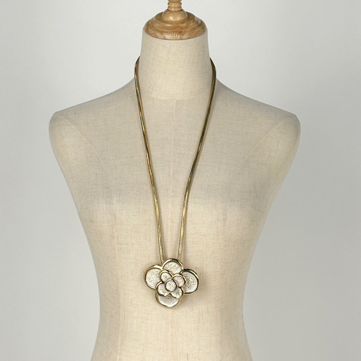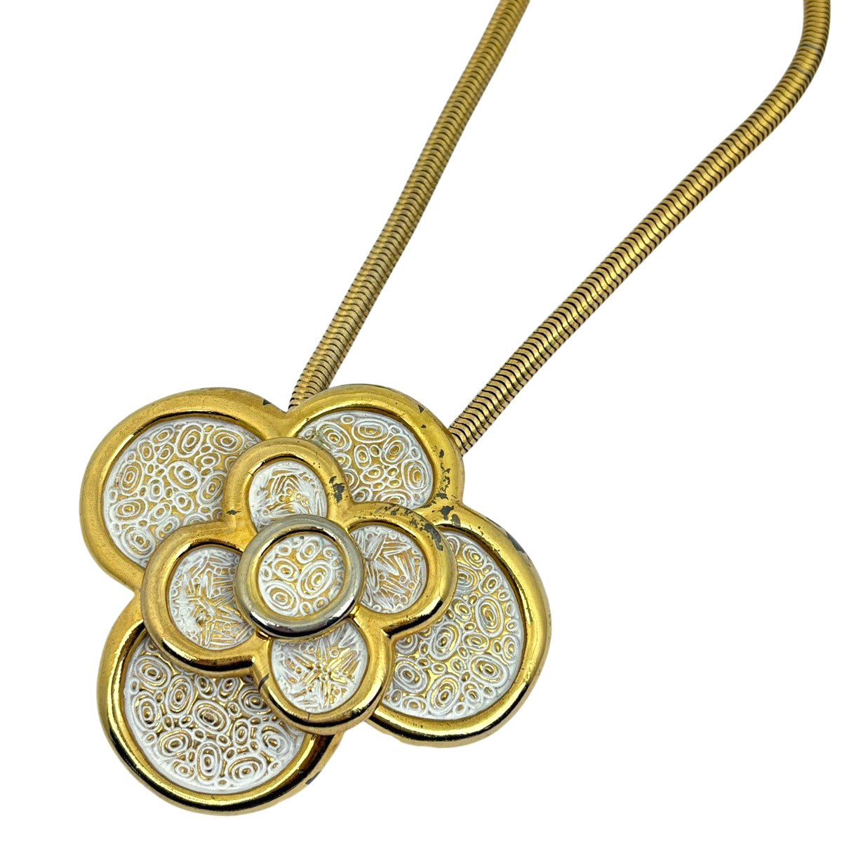 クリスチャンディオール ロング ネックレス フラワー ネックレス GP ゴールド ホワイト レディース ブランドアクセサリー 【中古】bracc