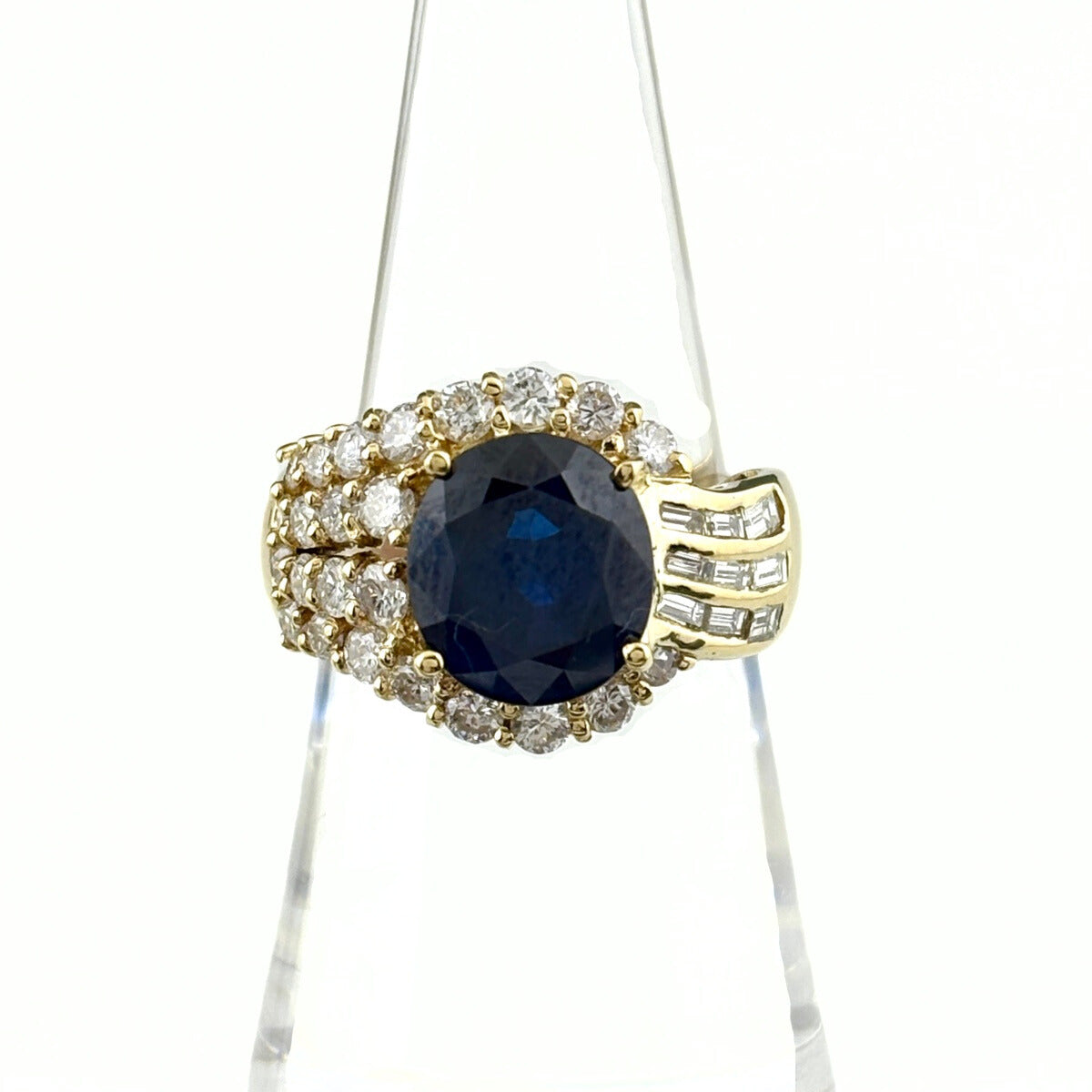 サファイア デザインリング リング 13号 K18 サファイア ダイヤモンド レディース ノンブランドジュエリー 【中古】nbjwl