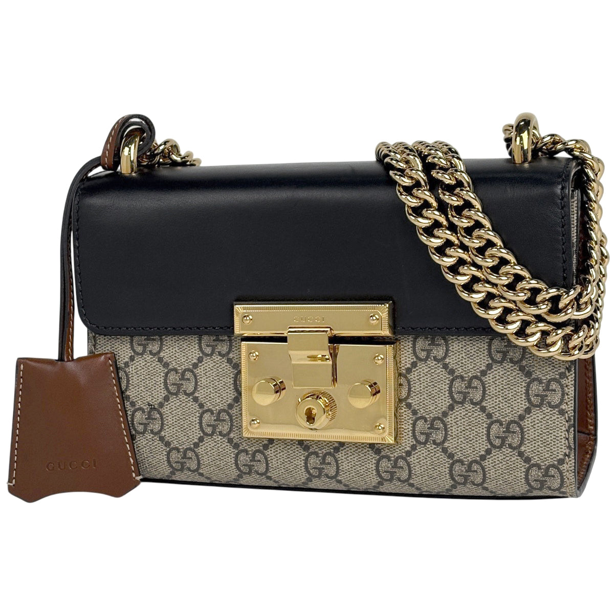 グッチ GG柄 チェーン ショルダーバッグ パドロック GGスプリーム ショルダーバッグ コーティングキャンバス ブラック ベージュ 409487 レディース ブランドバッグ・小物 【中古】brbag