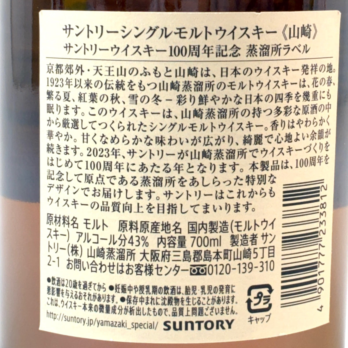 サントリー 山崎 100周年記念 シングルモルト ジャパニーズ 700ml 国産ウイスキー 酒 【古酒】liqbb【東京都内限定お届け】