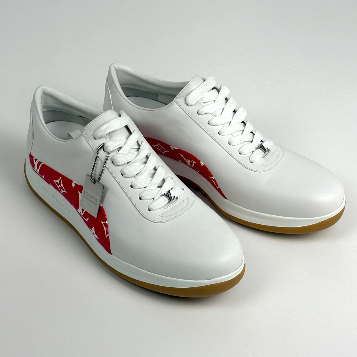 ルイ・ヴィトン ロゴ スニーカー モノグラム シュプリーム 靴 スニーカー レザー ホワイト レッド メンズ ブランドアパレル 【中古】brapp