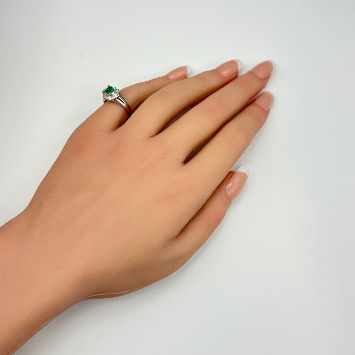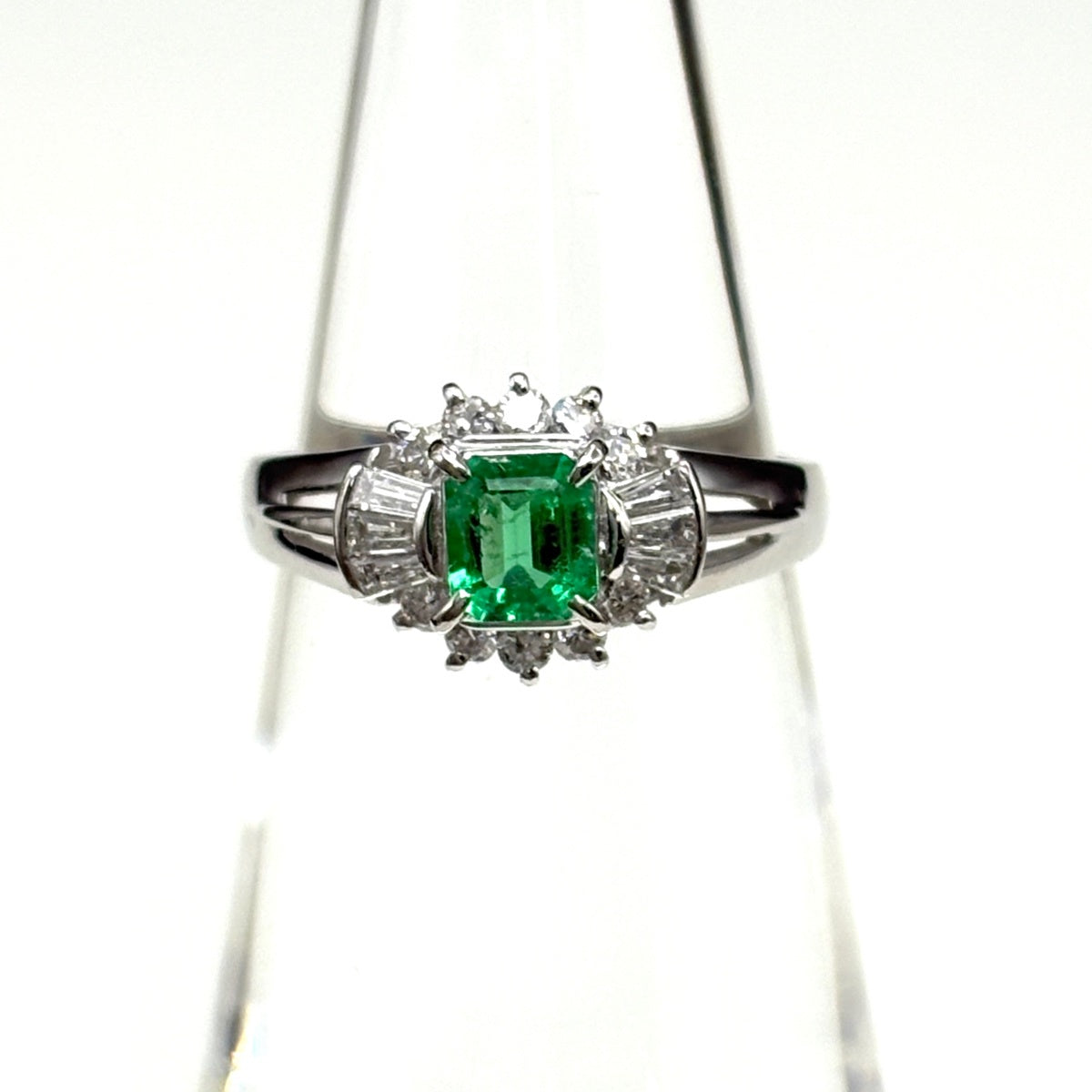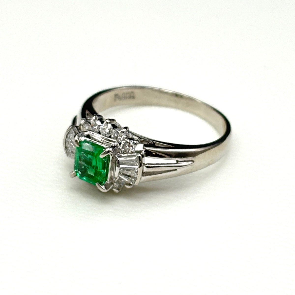 エメラルド デザインリング リング 9.5号 Pt900 ダイヤモンド レディース ノンブランドジュエリー 【中古】nbjwl