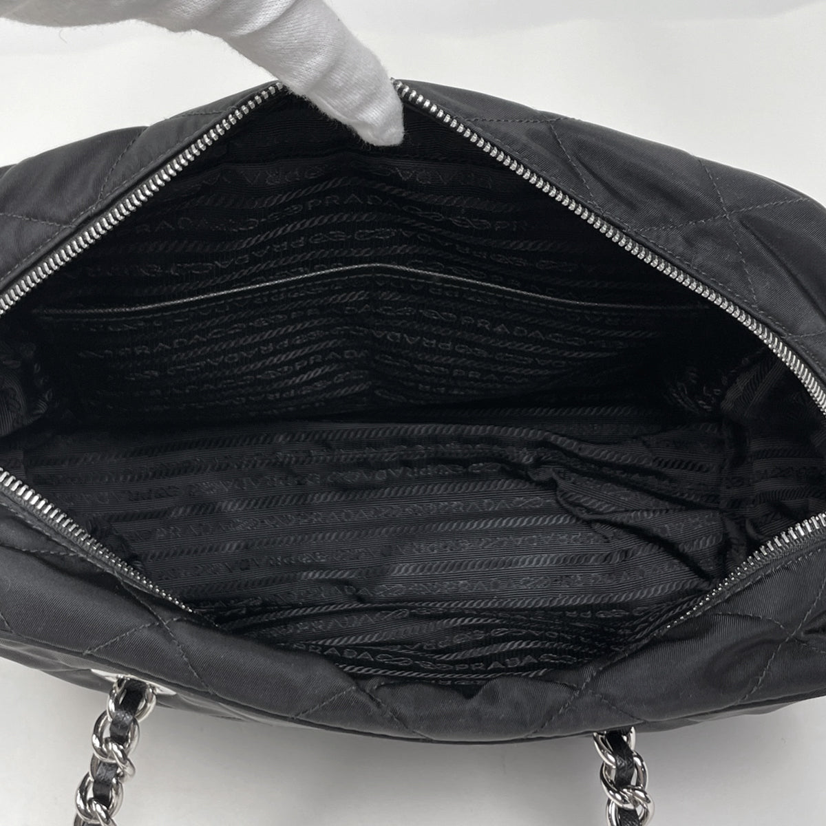 プラダ ロゴプレート チェーン トートバッグ トートバッグ ナイロン レディース ブランドバッグ・小物 【中古】brbag