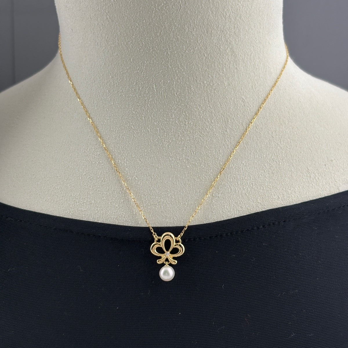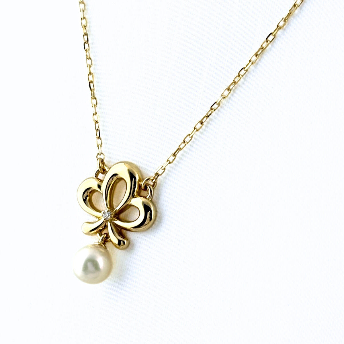 ライン YG イエローゴールド ペンダント メレダイヤ 真珠