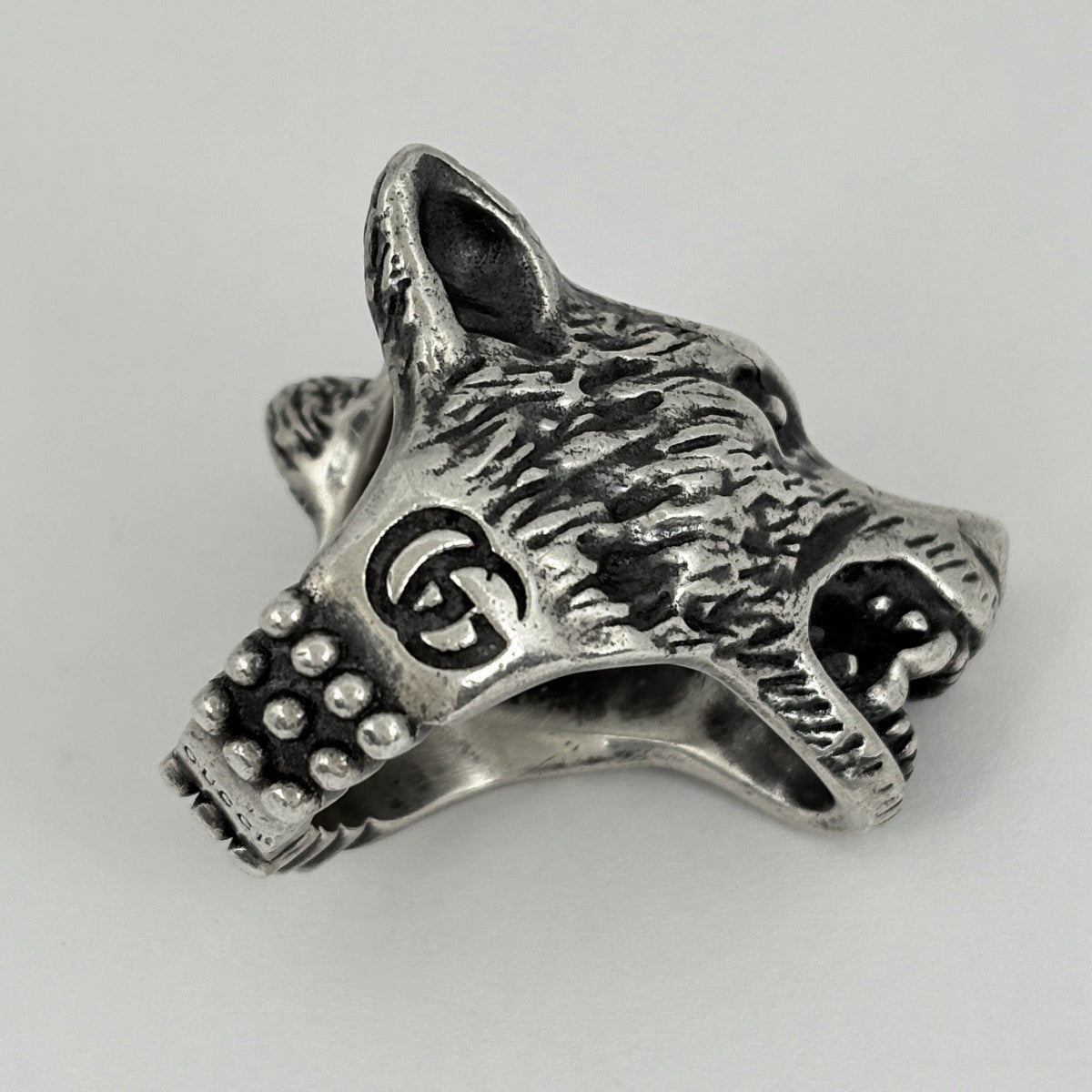 グッチ アンガーフォレスト ウルフヘッド リング リング 18.5号 シルバー925 メンズ ブランドアクセサリー 【中古】bracc